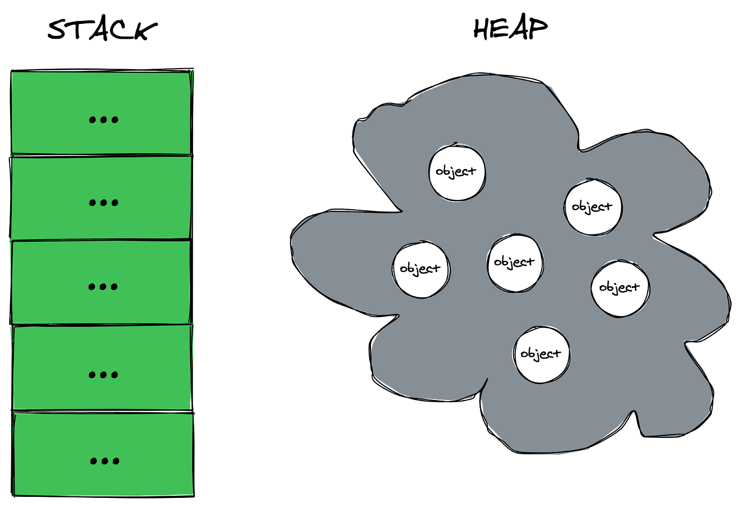 The heap, on the other hand, is a shared pool of memory used for data that needs to live beyond a single function call, or whose size/lifetime is hard to predict in advance (think objects, strings, arrays, dynamic data structures, and so on). You can allocate heap objects and keep them around by passing references across functions, storing them in other objects, or placing them in long-lived structures.
