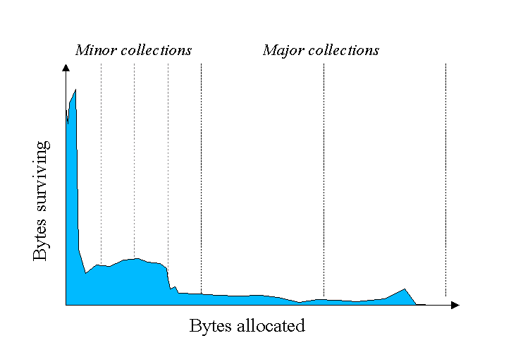 Generational collection is built on an empirical observation—the generational hypothesis: most objects have very short lifetimes. A temporary string built during a function call, an iterator, an intermediate calculation… these objects are created, used briefly, and become garbage almost immediately. A smaller fraction of objects (configuration, caches, long-lived data structures) stick around much longer.